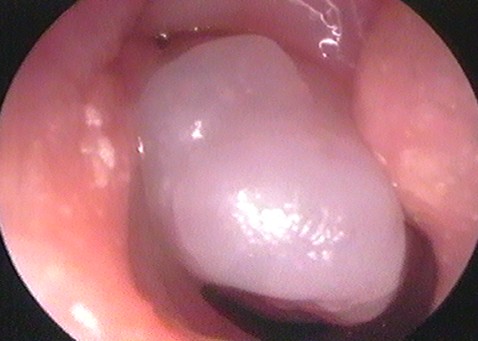 - l'atrésie choanale : elle peut être uni ou bilatérale et touche un enfant sur 4000 en moyenne. IL s'agit de l'absence d'ouverture de l'orifice postérieur de la fosse nasale ou choane. Elle peut être isolée ou parfois s'intégrer dans un syndrome malformatif (association CHARGE). Le traitement chirurgical a considérablement progressé depuis la mise au point des techniques endoscopiques.